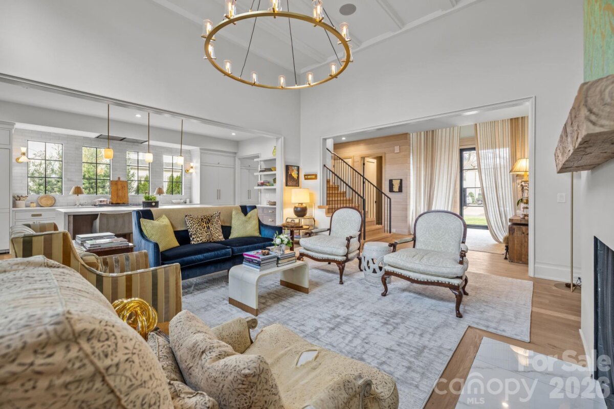 An EXQUISITE EASTOVER custom built residence blending timeless architecture with modern luxury. Curb appeal features tumbled brick, metal windows, bluestone accents, curated landscaping, and a dramatic steel-and-glass pivot entry door. Inside, light-filled interiors showcase white oak hardwood floors, custom trim, white-washed shiplap, exposed beams, and soaring ceilings. The Great Room boasts 15’ ceilings, transom windows, a custom fireplace with reclaimed white oak mantel, and a concealed Hall library with built-in shelving. Sliding glass walls in the Great and Dining Rooms open to a covered terrace with bluestone flooring, ceiling fan, and masonry fireplace, perfect for indoor-outdoor entertaining. The open chef’s kitchen features a gray-washed white oak waterfall island with Lavezzi leathered quartzite countertops, Silestone perimeter counters, marble backsplash, and custom cabinetry. Premium appliances include Sub-Zero refrigeration, integrated dual-zone wine tower, Wolf 48†dual-fuel range, and ASKO dishwasher, plus a dedicated beverage, prep and pantry area. The main-level primary suite offers vaulted ceilings, French doors to the landscaped yard, access to a private retreat, and a spa-inspired bath with freestanding tub, frameless glass shower, marble countertops, and walk-in closets. Upper levels provide four bedrooms with two ensuite, full laundry, den/media space, study/office, and a generous third-floor bonus room for exercise or a private study with a wall of closets for storage and walk-in attic storage. The upstairs left suite would function seamlessly as a secondary primary retreat. Additional highlights include two laundry rooms, energy-efficient construction, and a detached two-car garage. Convenient to shops and restaurants in the Myers Park and Eastover area with an easy commute to Uptown.