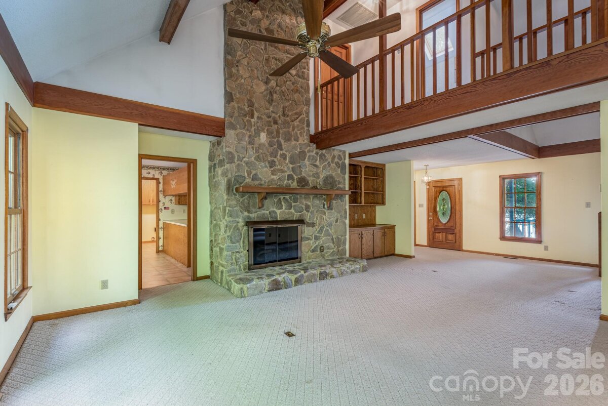 The view you have been looking for can be found at 213 Price Place Lane with 1.4 acres of lakefront living! This one-owner home is ready to welcome new owners and is a blank slate waiting for you to make it your own. The main floor is home to the kitchen, dining room, family room with fireplace, and primary bedroom with private bath. Upstairs features two additional bedrooms and a full bath. A detached garage offers space for vehicles or storage. Enjoy your morning coffee on the screened porch or relax on the rocking chair front porch as you enjoy the highlight of this property – the incredible water views! Spend those warm spring and summer days enjoying all the water activities that draw you to the lake. A permitted dock and covered cabana are included with this property – and with some updating - can be a fabulous spot to fish, sunbathe, enjoy the water, or whatever you choose. You need to come see the potential this one has to be your next home!