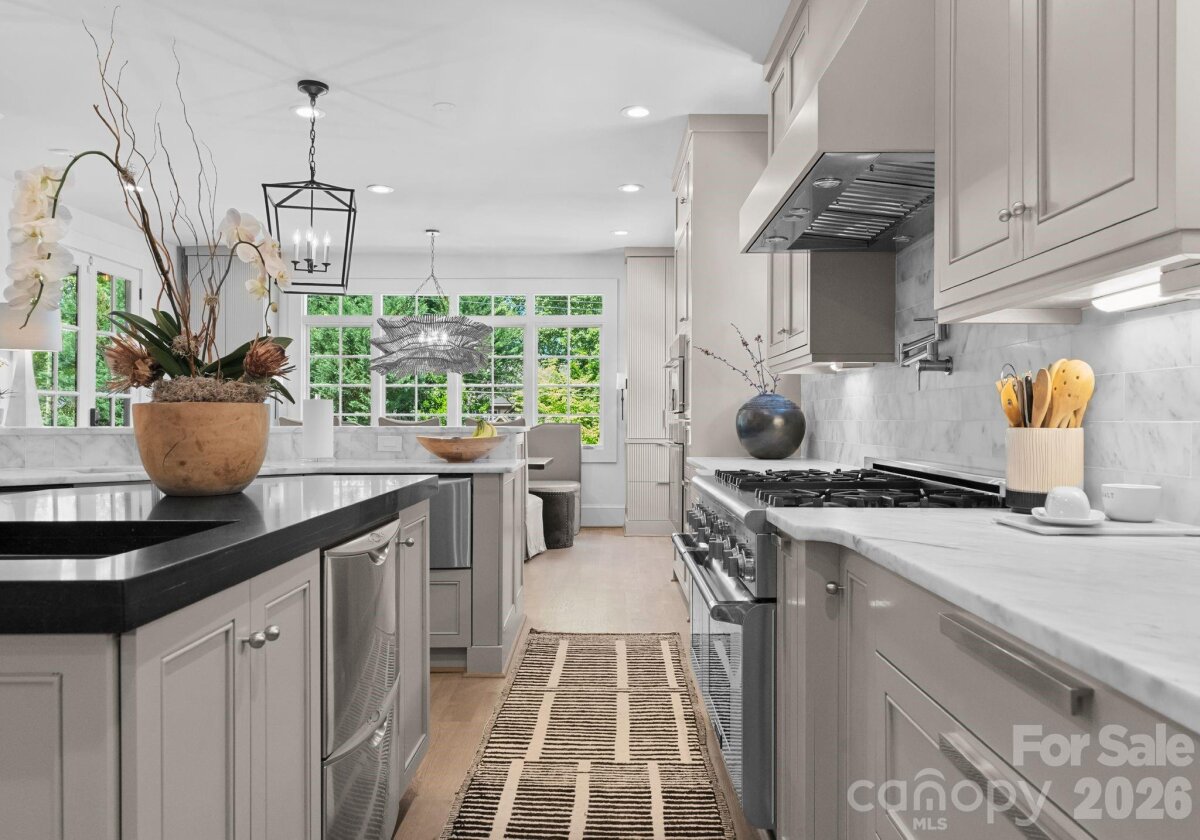 Experience timeless elegance at this distinguished Tudor residence on the renowned Queens Rd. W in prestigious Myers Park neighborhood. This exquisite home marries classic charm with contemporary sophistication, offering the perfect balance of luxury and comfort. With its' warm formal areas and open-concept kitchen and family room, this home is perfect for intimate gatherings and daily living. Upper level features primary suite and three additional bedrooms, each with en-suite baths, ensuring privacy and convenience. A versatile bedroom on the main level and another on the basement level, both with en-suite baths, offer flexibility for family or guests. Meticulous renovations adorn every surface, refelcting an unwavering attention to detail. Outside, the property transforms into a private sanctuary, where lush, mature landscaping and elegant bluestone decking embrace the serene saltwater pool and spa. This tranquil oasis offers a retreat of unparalleled peace and refinement. Contact An Agent: