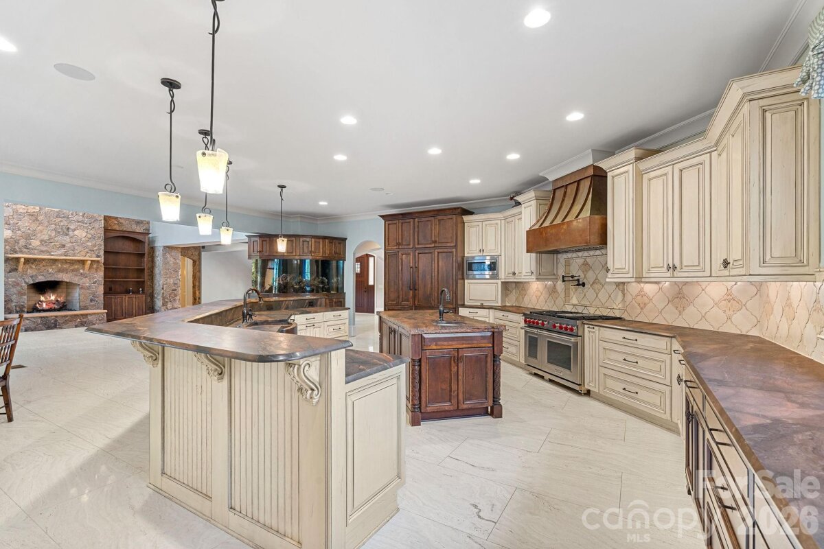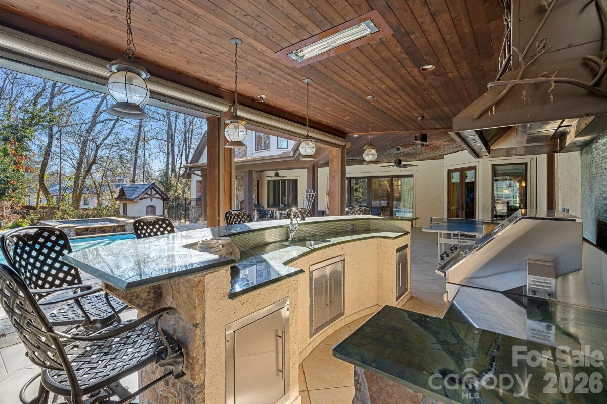 Welcome to your exquisite country estate home on 2.81 Acres, in the heart of the South Park area. This custom home is over 8,000 SF, designed like a mountain chalet with natural stonework and tile, and exceptional millwork throughout, on a private wooded lot. The home has a very open floorplan, with approximately 2000 SF of open space in the Great Room, Kitchen, Dining Room, and Foyer. The 2-story Great Room features a wood-beamed cathedral ceiling with a full height stone gas fireplace. The kitchen is a gourmet cook's dream, with top-end appliances, custom whitewashed cabinets, and over 800 SF of counter space. The main level also features a massive game and TV room, with a wet bar, a study with a full wall of built-in bookshelves, and the Primary Bedroom Suite. The indoor space flows to a beautiful outdoor retreat or entertaining area, with a covered porch with power screens, outdoor kitchen area, outdoor fireplace, and the heated saltwater pool. Beyond the pool, at the back of the property, is a fenced-in tennis and basketball court. The second floor had four full bedrooms with en-suite bathrooms, and a large bonus room. Car enthusiasts will appreciate the double oversized 2-car garages. Contact An Agent: